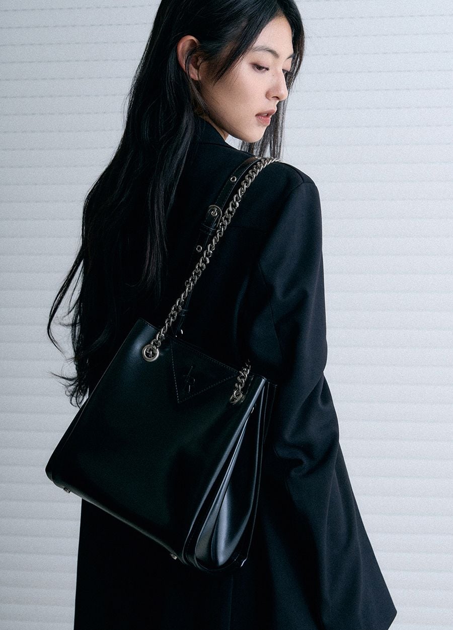 Chi tiết dây xích kim loại sáng bóng không chỉ tạo điểm nhấn độc đáo mà còn tăng thêm sự chắc chắn cho túi. Ngăn chính rộng rãi cùng các ngăn phụ tiện lợi giúp bạn dễ dàng sắp xếp và bảo quản đồ dùng cá nhân. Dây đeo có thể điều chỉnh độ dài, mang lại sự linh hoạt khi sử dụng.