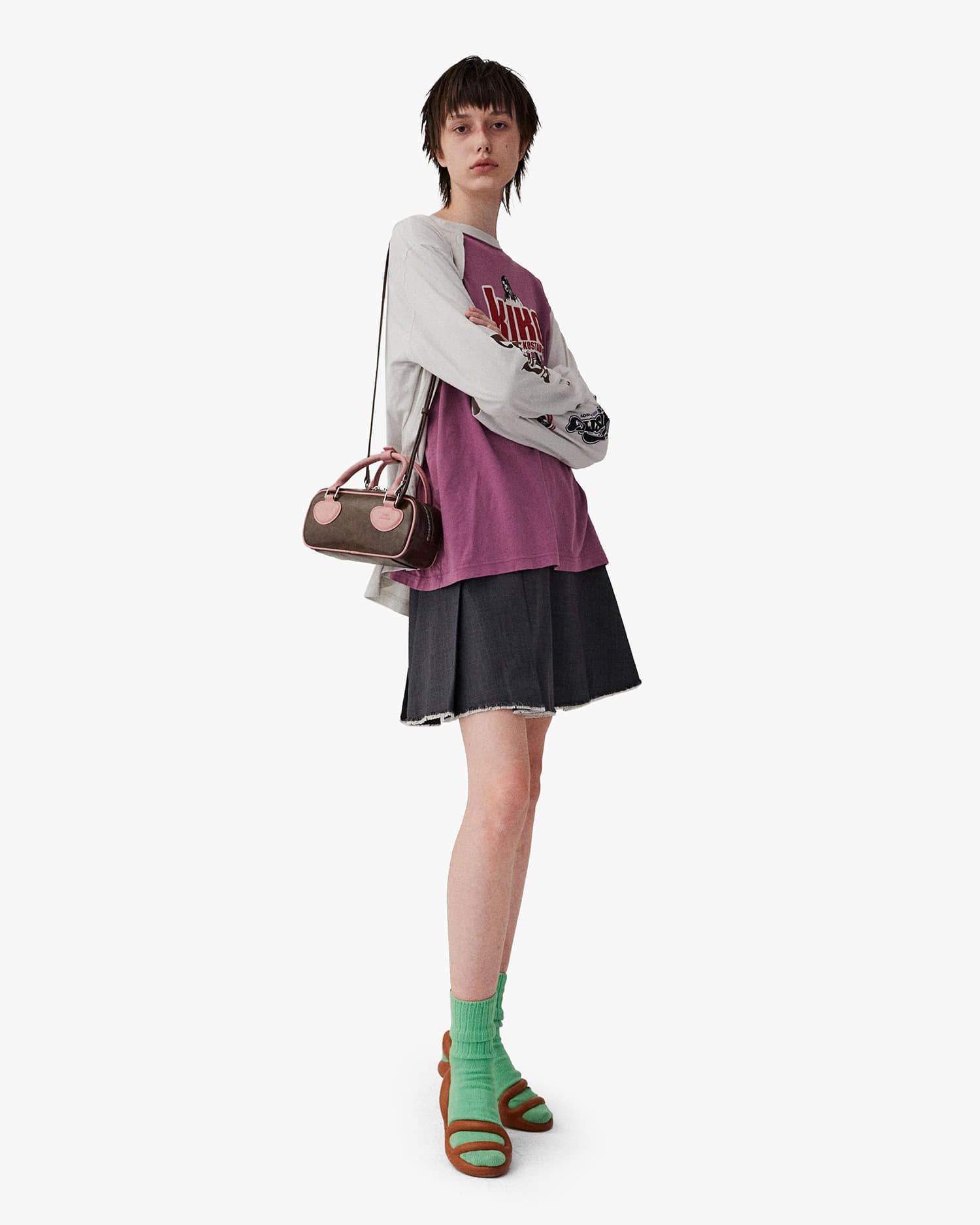 Thiết kế khóa kéo hai chiều tiện lợi, bên trong có ngăn nhỏ riêng biệt giúp cất giữ các vật dụng quan trọng như tai nghe, thẻ hoặc chìa khóa. Tay cầm cứng mang hơi hướng cổ điển, kết hợp cùng dây đeo có thể tháo rời và điều chỉnh linh hoạt – phù hợp cả khi đeo vai lẫn cầm tay.
